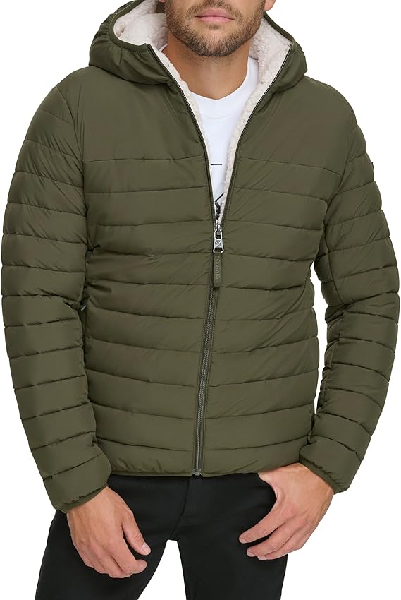 Men's Hooded Down Jacket, Quilted Coat, Sherpa Lined