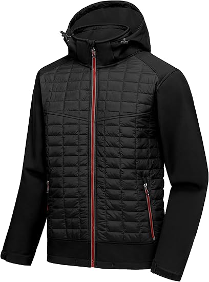 Men's Lightweight Insulated Hybrid Jacket for Hiking Running Ski Thermal Warm with Removable Hood